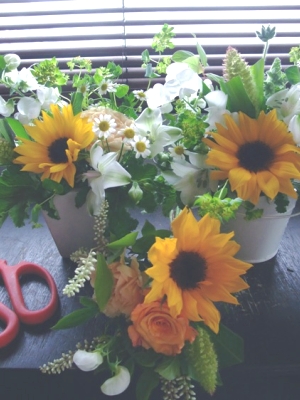 毎週、歯医者さんにお届けしている花。既にヒマワリの季節です。