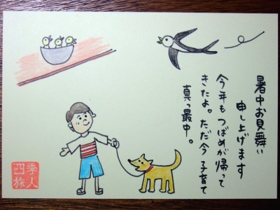 | いつも絵手紙交換しているお客様のお子さんへ送ったハガキ。 |