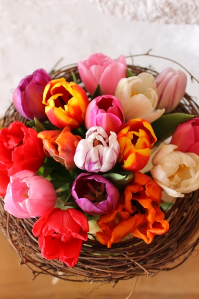| カフェレッスンで作って頂いたチューリップのブーケ。 |