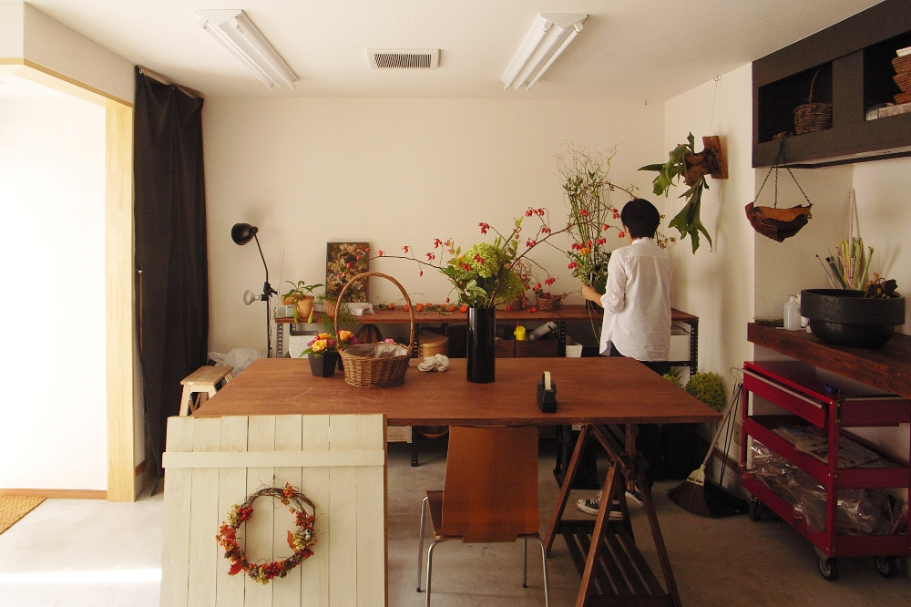 それに比べて新しい作業場は今までの何倍もの広さで、仕入れた商品の置場に頭を抱えることもありません。簡単なリフォーム工事を終えた後、花を活ける作業台のサイズを考えたり、さまざまな仕事道具や資材を収納する什器をどこに配置するか考えたり、過去の経験をもとに快適なスペースを作るための一つ一つの作業がとても楽しかったです。