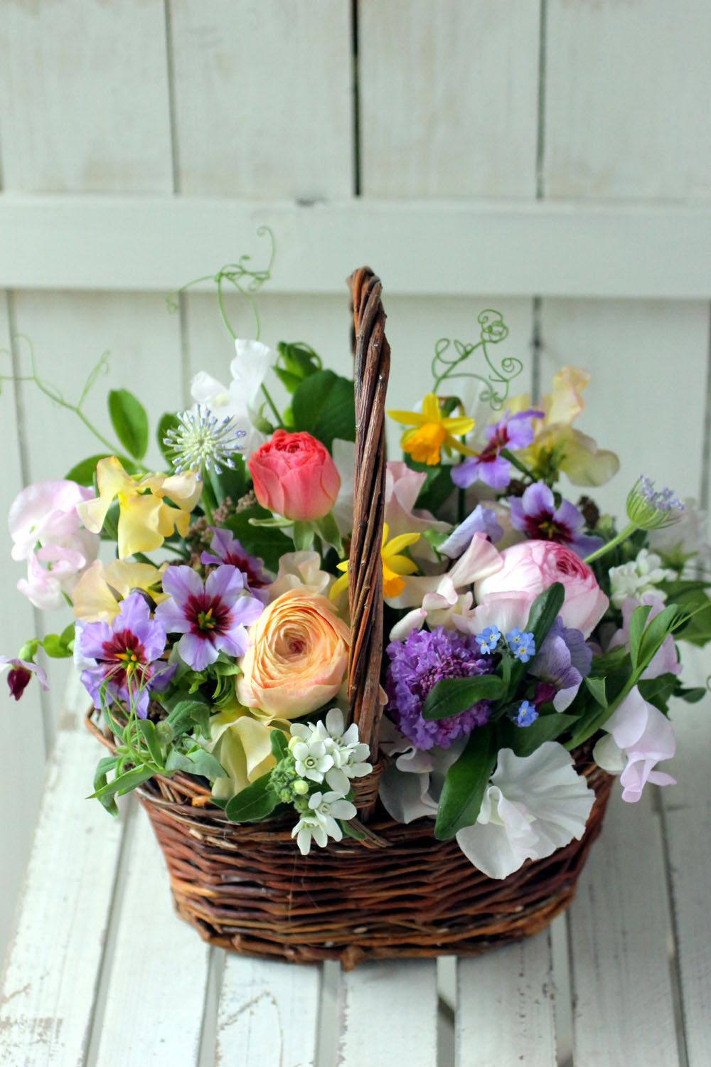 春の花かご。季節を存分に感じられる人気のスタイルです。