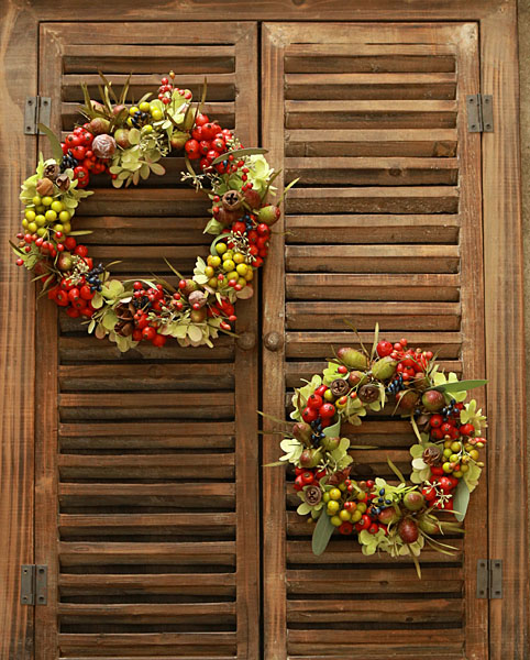 | 様々な秋の実を集めたリースも、この時期ならでは。 |